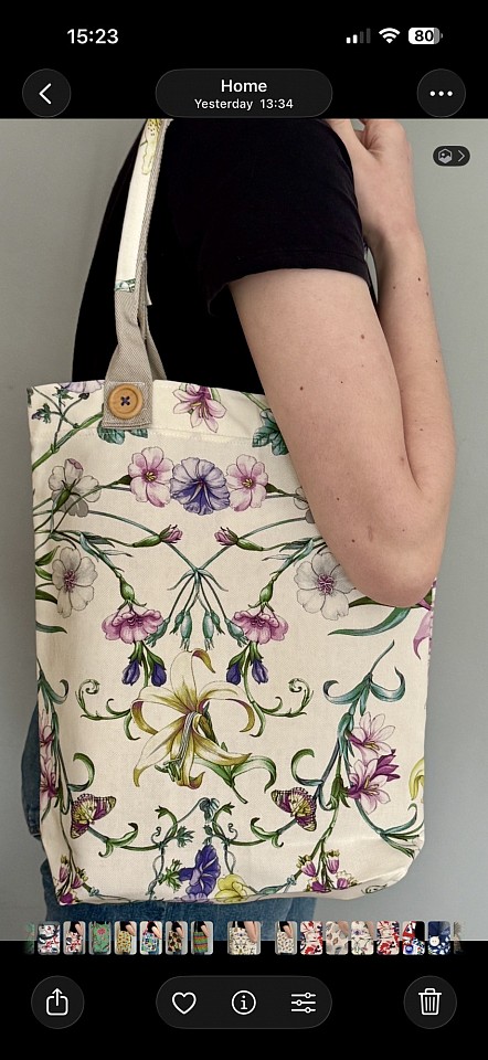 Perfect carry-it-all tote. Heavy duty for items like milk or lightweight to fit in a pocket. These pretty Tote bags have luxury stuffed rolled handles for comfort and French seams for strength. Each shopper bag has its own unique button for that little extra flair. The fabric is upcycled to prevent waste. Makes a perfect Gift and perfect for travelling.